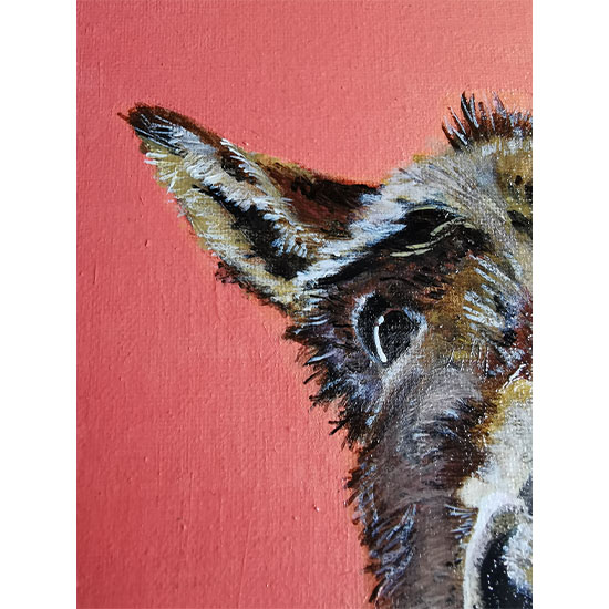 Visual for All® choisit de les peindre pour ce qu’ils sont vraiment : des êtres uniques, puissants et troublants. De plus, ces portraits animaliers sont réalisés en peinture acrylique sur carton entoilé, en petit format, alliant réalisme et émotion. Ils sont issus d’une exposition dédiée à la bienveillance envers ces êtres oubliés du grand public.