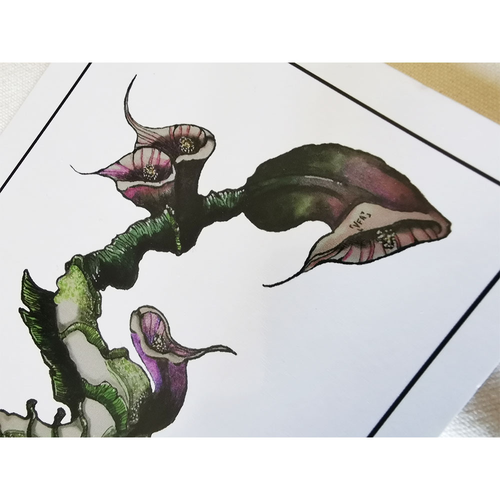 L’arum, plante exotique venue d’Afrique du Sud, incarne la grâce, la rareté et l’élégance. Elle offre une large palette de nuances douces, allant du blanc au rose, violet ou mauve.